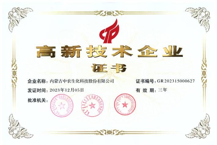 国家级高新技术企业证书